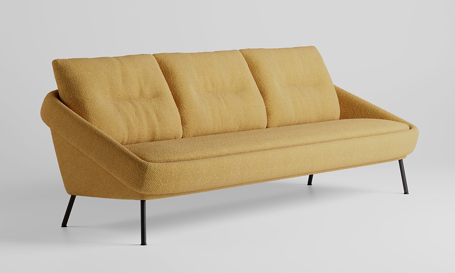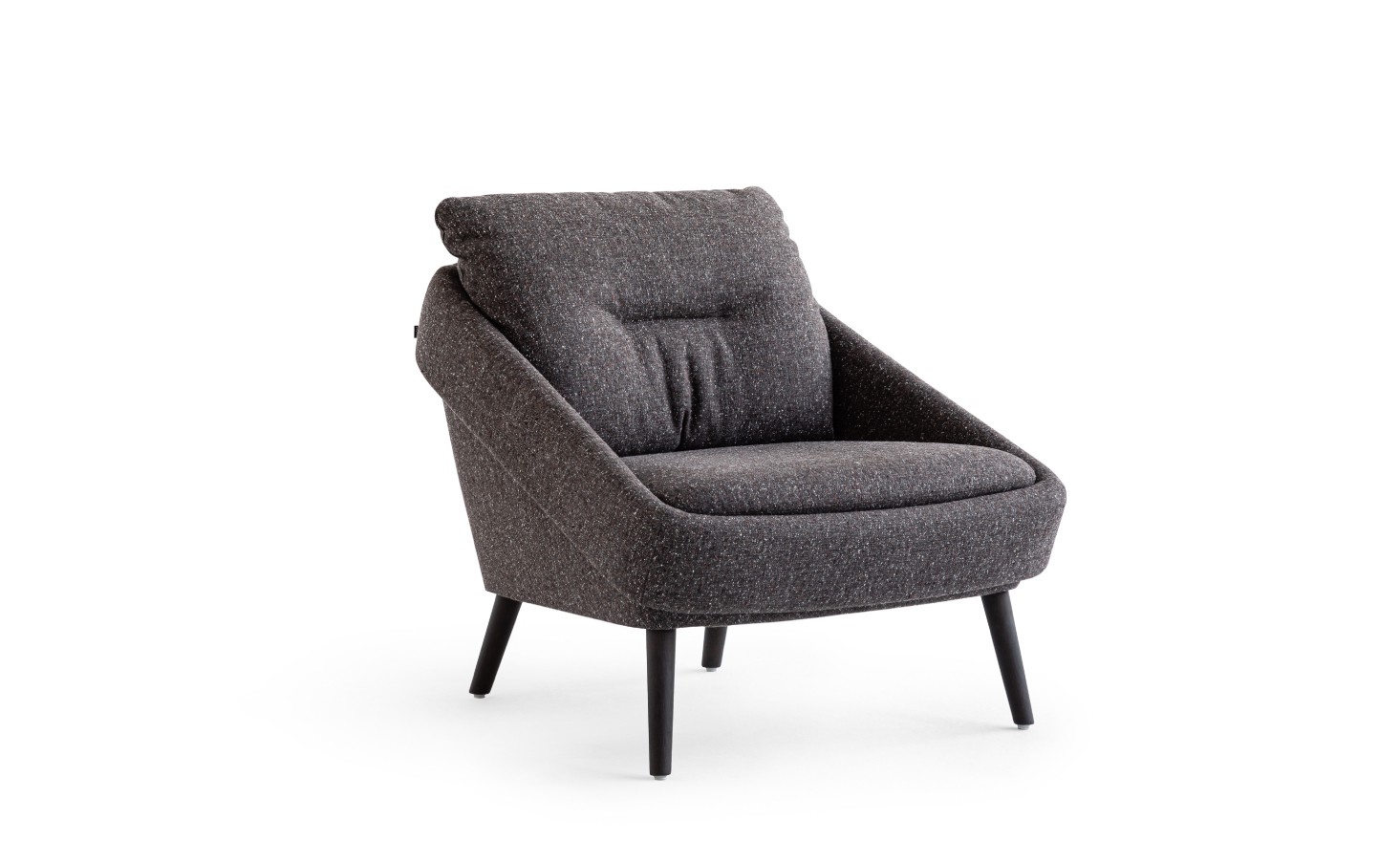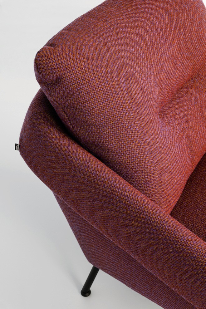 The distinctive shape of the loose backrest cushion with a characteristic horizontal division enhances the ergonomics of the seat and the comfort of the backrest, while giving the armchair an undeniable appeal based on visual clarity.