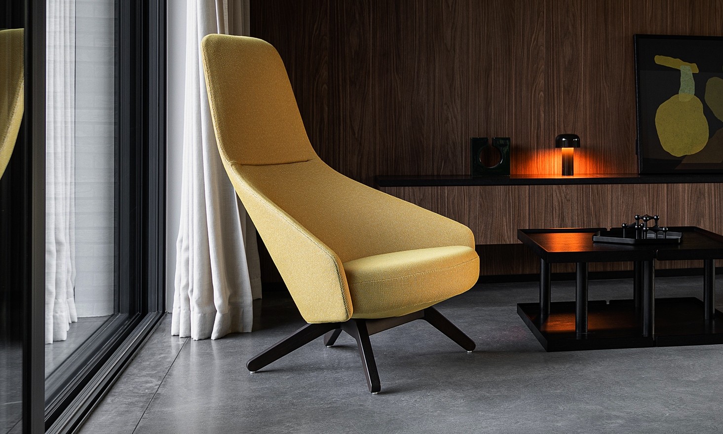 With a multitude of base and finishing options, the collection can match different kinds of interiors, and its dynamic form makes it a highlight of the space.