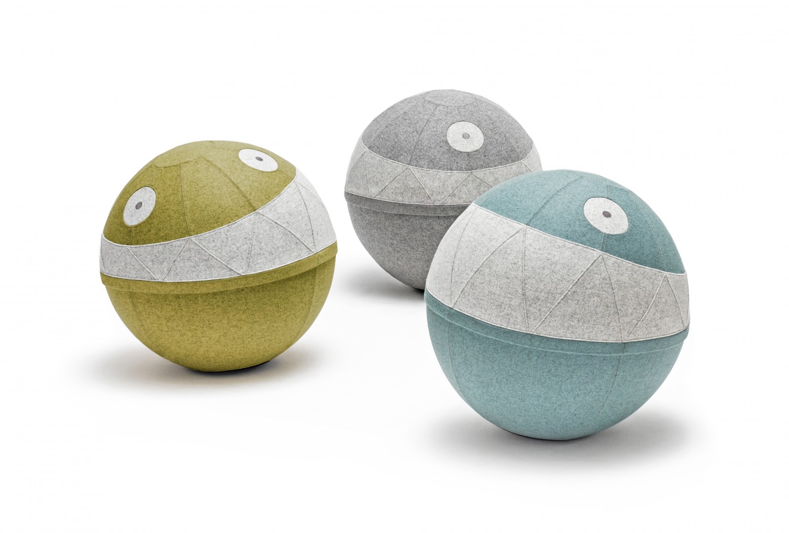 It is lightweight, mobile and extremely comfortable. The cover, upholstered in 100% wool, conceals a rubber ball with a diameter of 65 cm. All you need to do is to insert the ball, inflate it using the supplied pump and zip up the zip fastener around the ball – and the pouffe is ready for use. Owing to the ballast placed in the bottom section, the pouffe is able to stay in a fixed position on the ground, maintaining the pattern.
