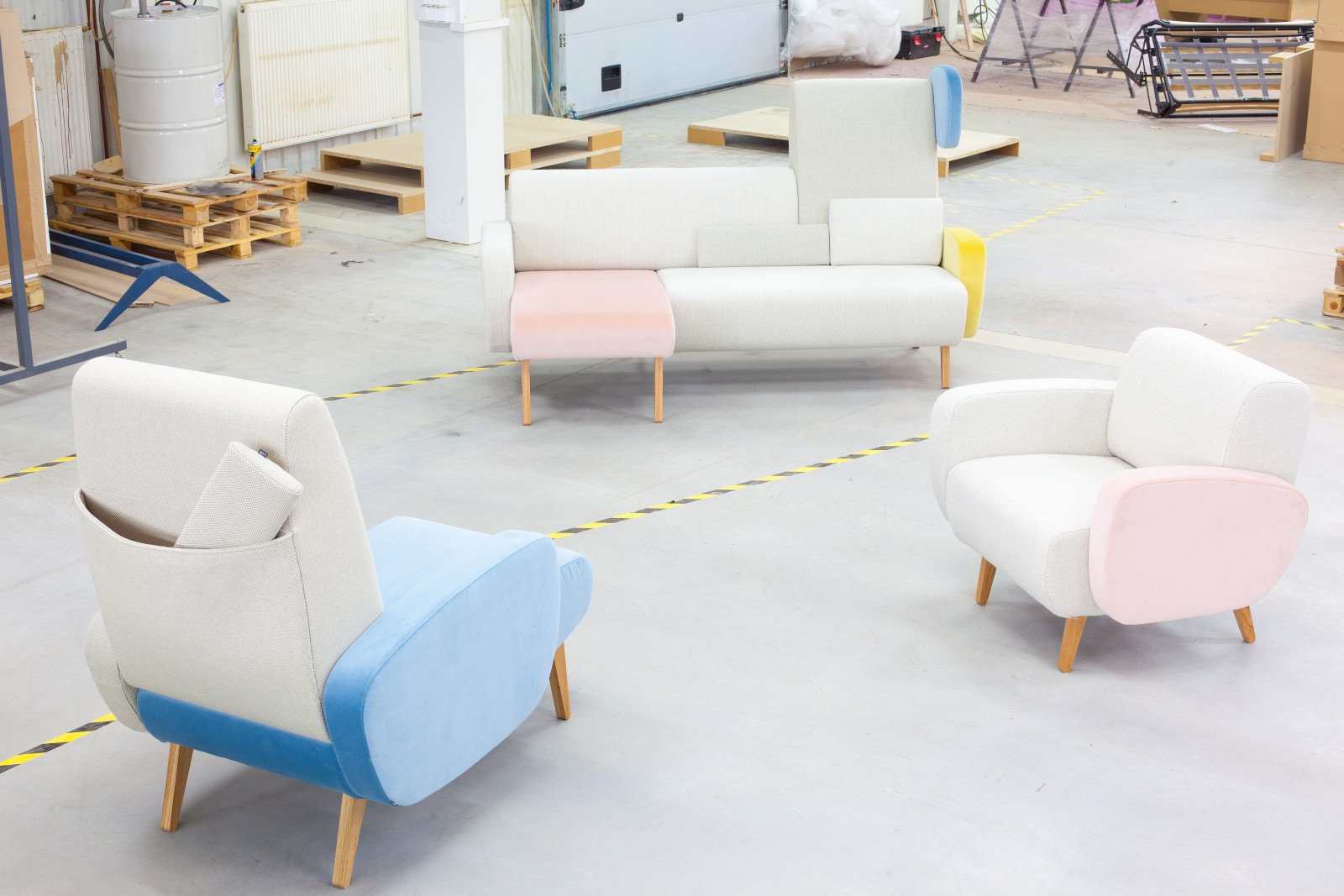 Clients depending on their needs and demand can play with the blocks matching them and connecting and thus forming armchairs sofas – higher lower bigger smaller. It is like playing with Lego bricks.