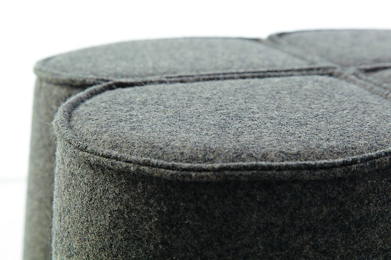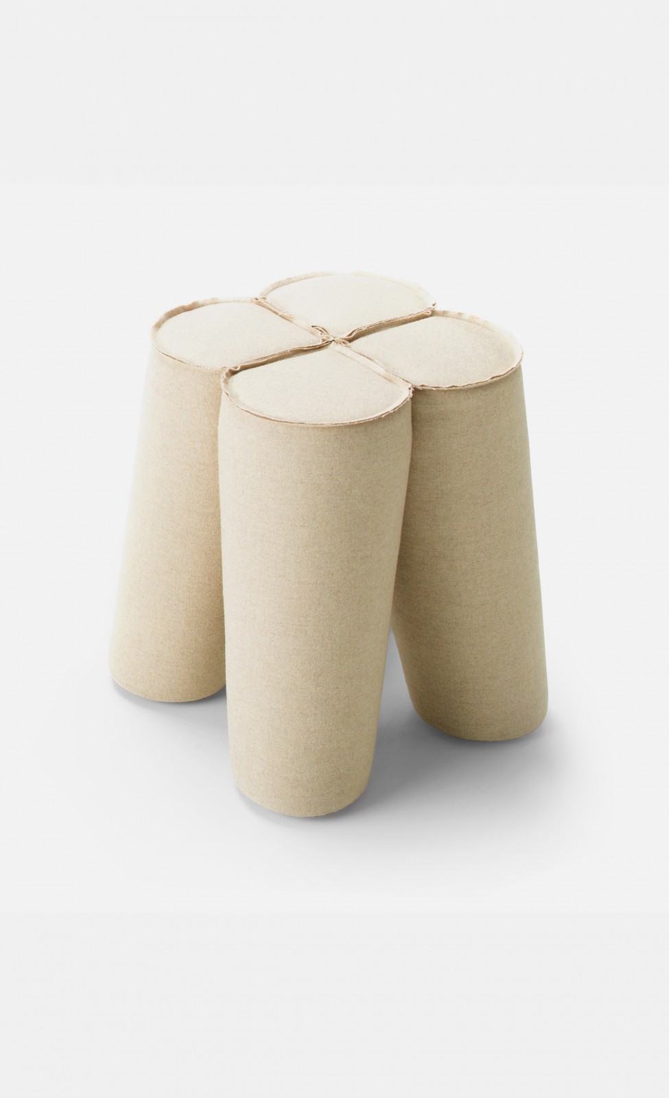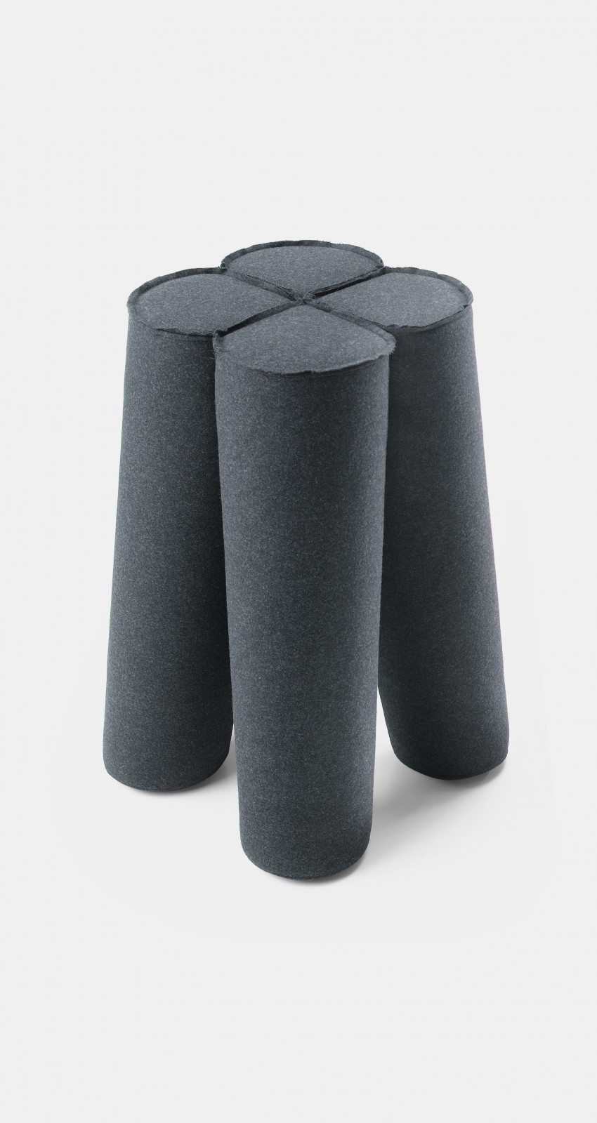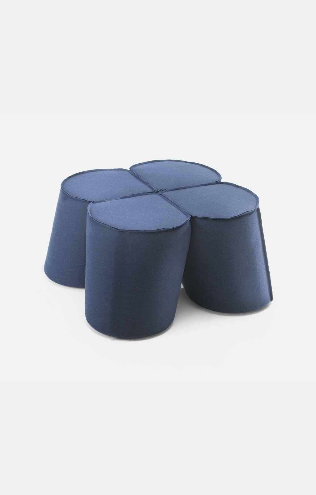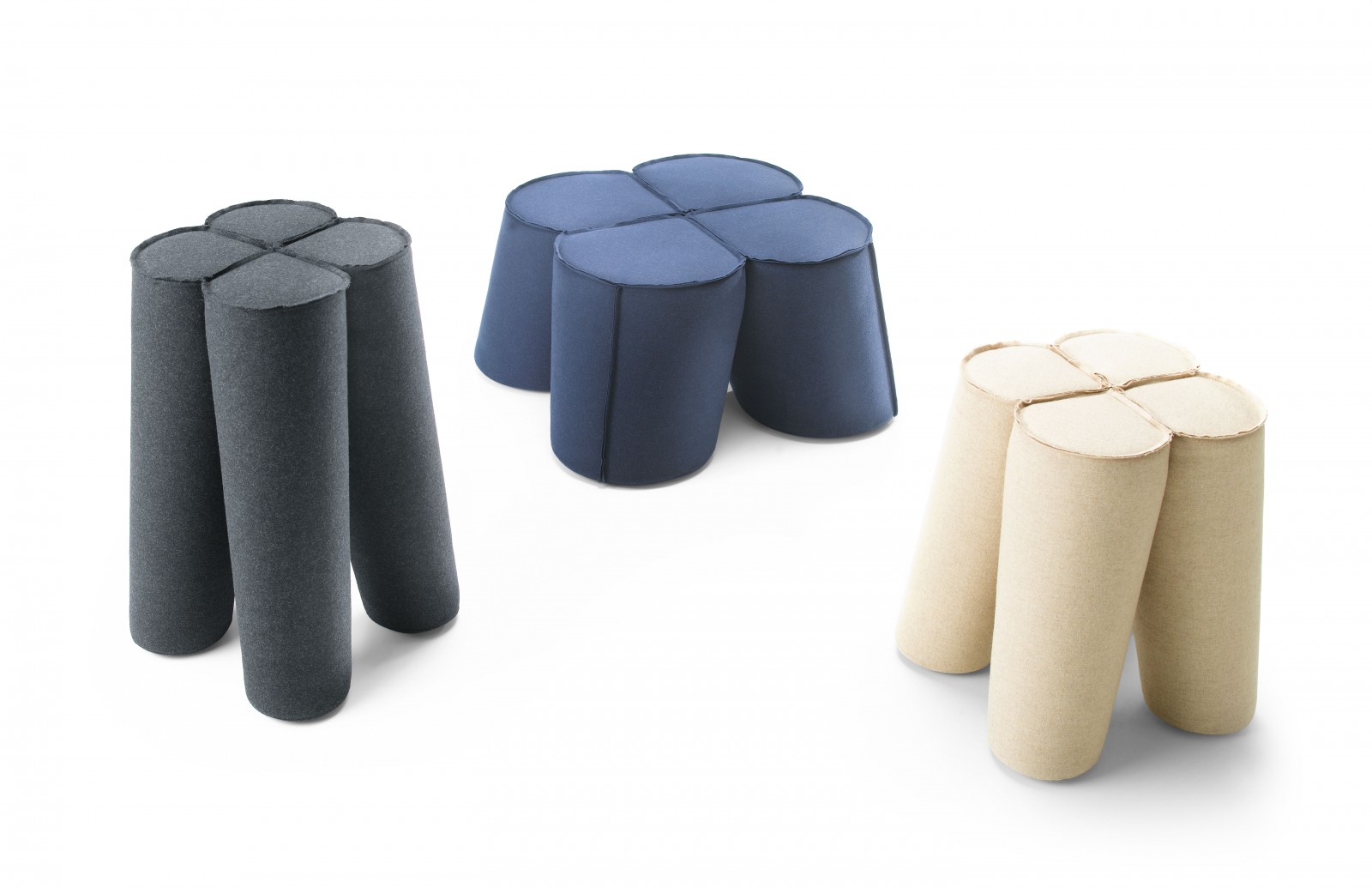 The family consists of three types of seats of different sizes: pouf, stool and bar stool.