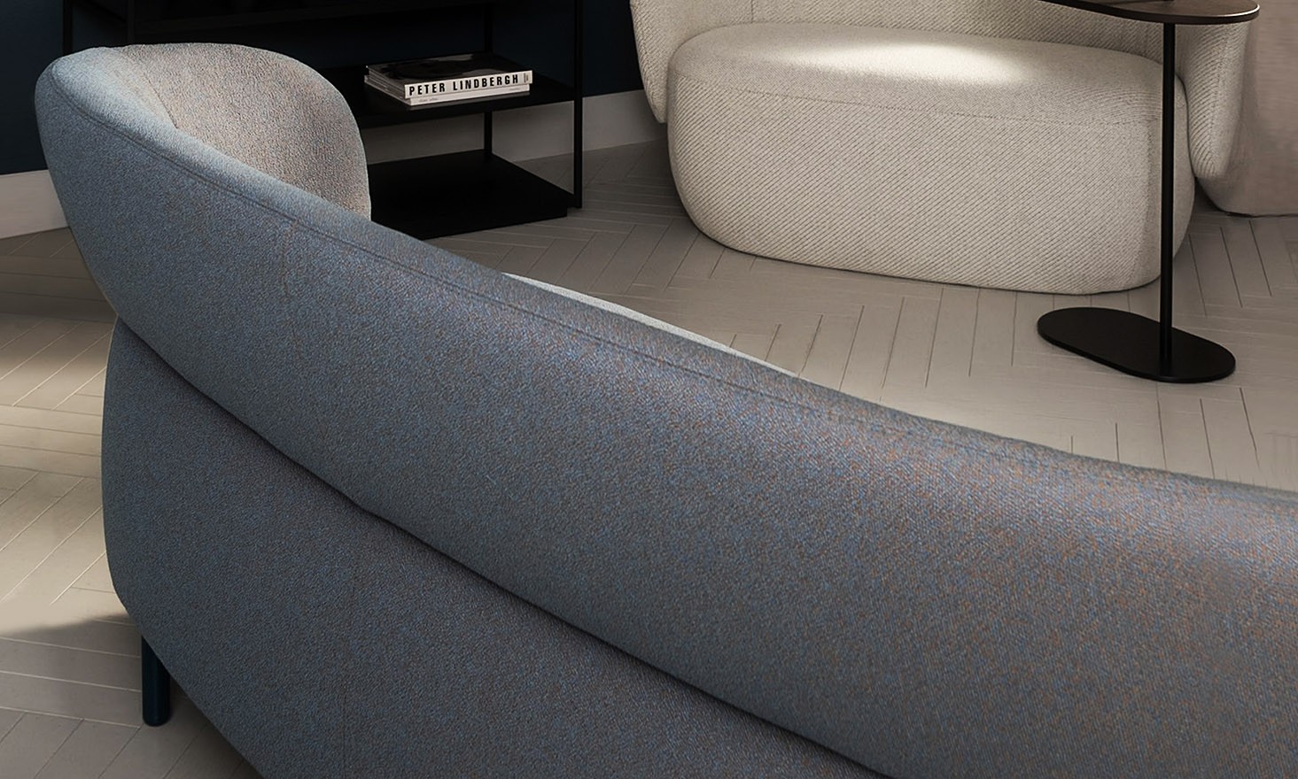 Tous les meubles Kori ont été dessinés avec des lignes douces et fluides. Leurs dossiers mous, ondulants et presqu’organiques ressemblent à des coques qui accueillent et enveloppent quiconque s’y assied.