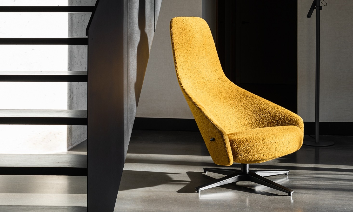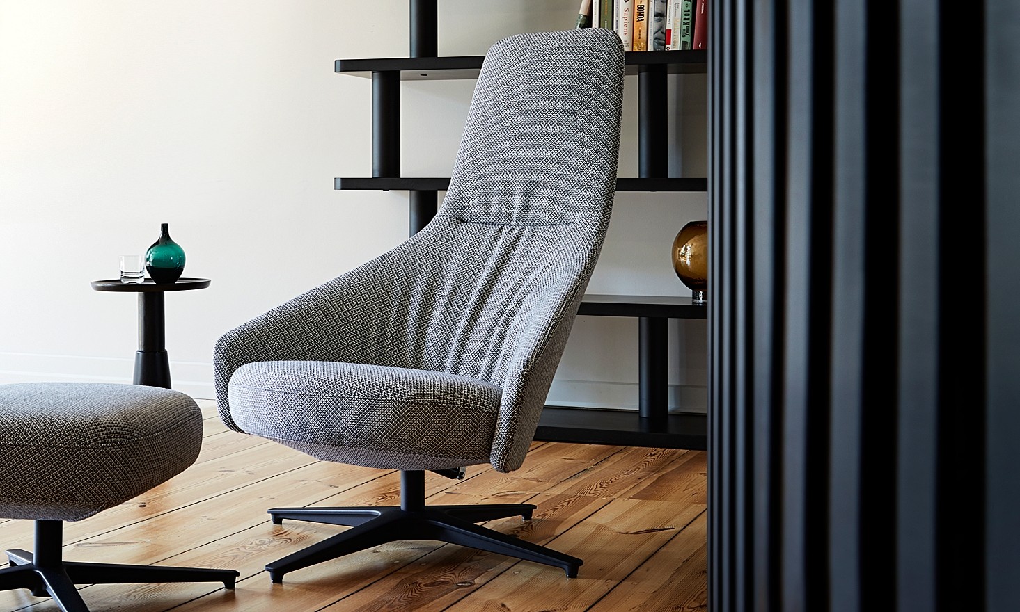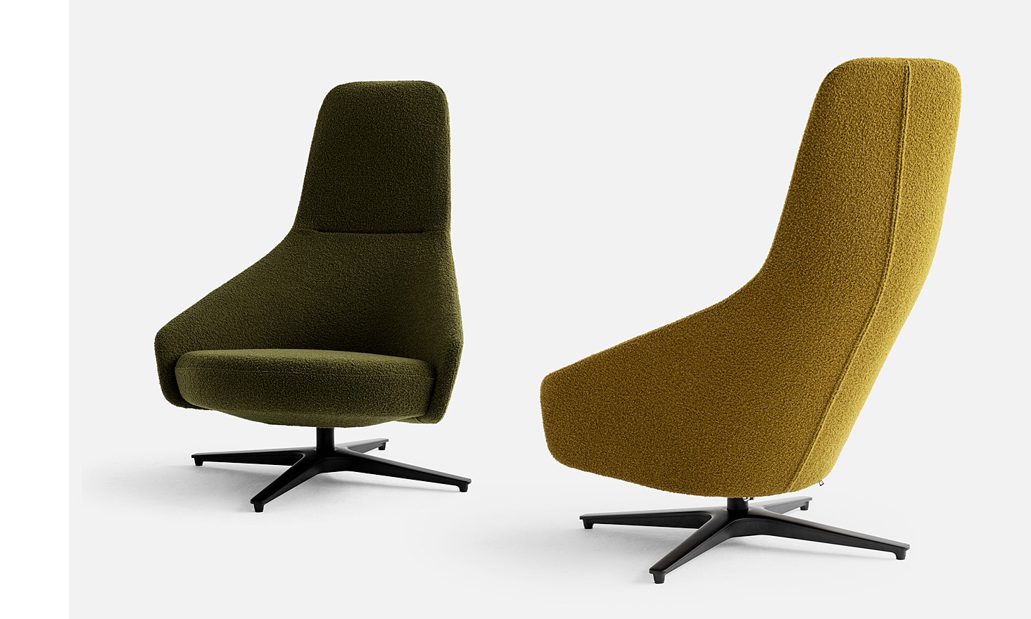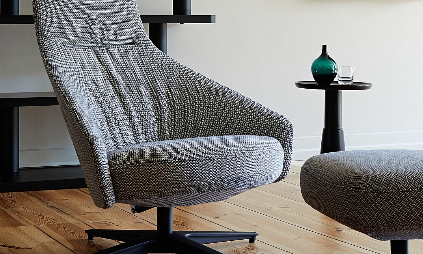 Son ergonomie et son confort sont améliorés par un mécanisme de réglage du dossier, disponible en option. Cela permet de régler l'angle d'inclinaison de 12° pour obtenir une position presque allongée et augmenter le confort. La collection est complétée par un repose-pied.