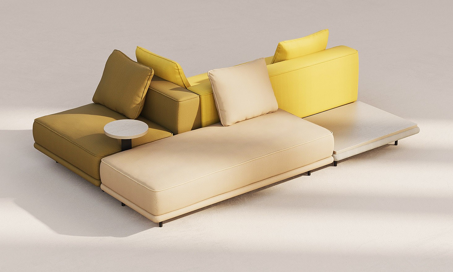 Topo est une collection des canapés modulables dont la forme fait référence aux lignes de contour représentées sur les cartes topographiques.