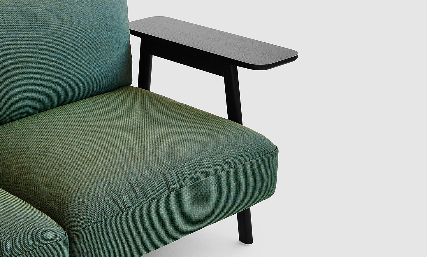 Obniżony, ergonomiczny podłokietnik umożliwia wygodne użytkowanie w różnych pozycjach – zarówno klasycznie, jak i pod kątem, zapewniając większą swobodę. Podłokietnik pełni jednocześnie funkcję przegrody między siedziskami, tworząc prywatne strefy, idealne do współdzielenia przestrzeni, w której każdy może cieszyć się własnym komfortem. Wysoka wersja zapewnia izolację akustyczną, co sprawia, że Hana doskonale sprawdza się w miejscach, gdzie liczy się prywatność i możliwość skupienia, zwłaszcza w otwartych przestrzeniach biurowych.