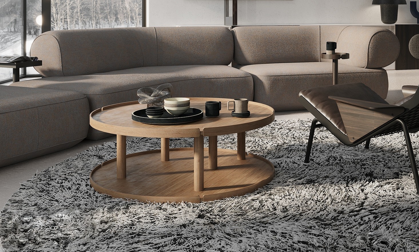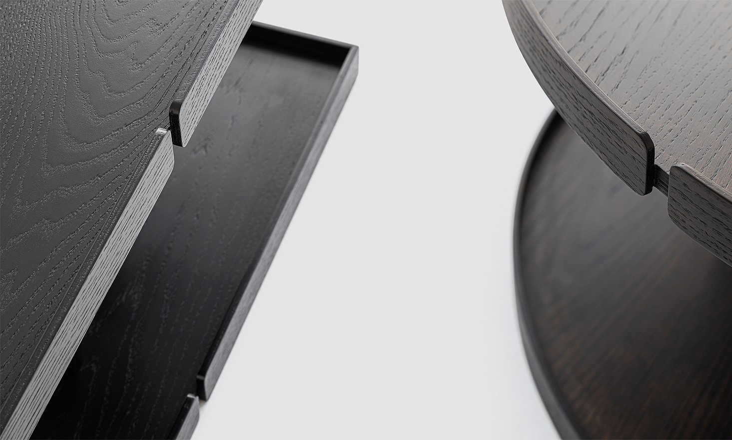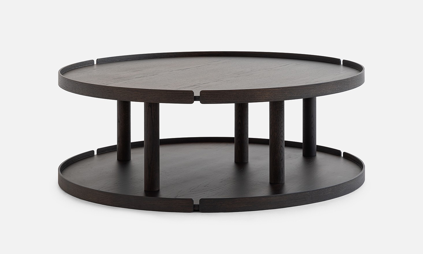 Stoliki Serif występują aż w 6 rozmiarach, dostępne w wersji okrągłej jak i prostokątnej, wykonane z okleiny dębowej oraz litego drewna.