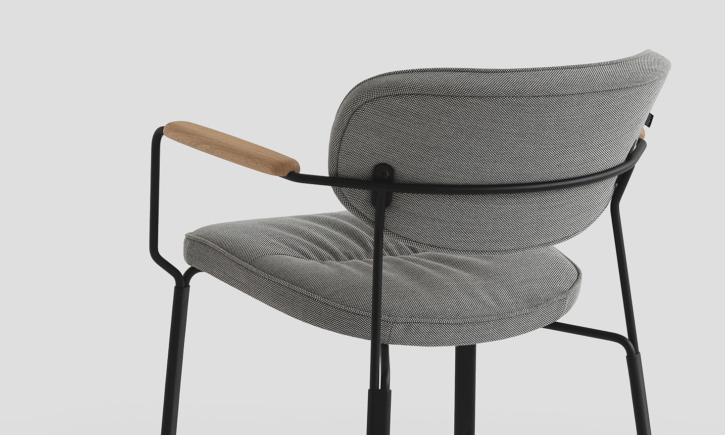 Zarówno fotel, jak i krzesło Algo występuje w dwóch opcjach: ze sklejki bukowej wykończonej okleiną dębową (z podłokietnikami dębowymi zawsze w kolorze okleiny) oraz tapicerowany (z podłokietnikami dębowymi). Szeroka oferta tkanin oraz wykończeń Noti pozwala na stworzenie wyjątkowych produktów.