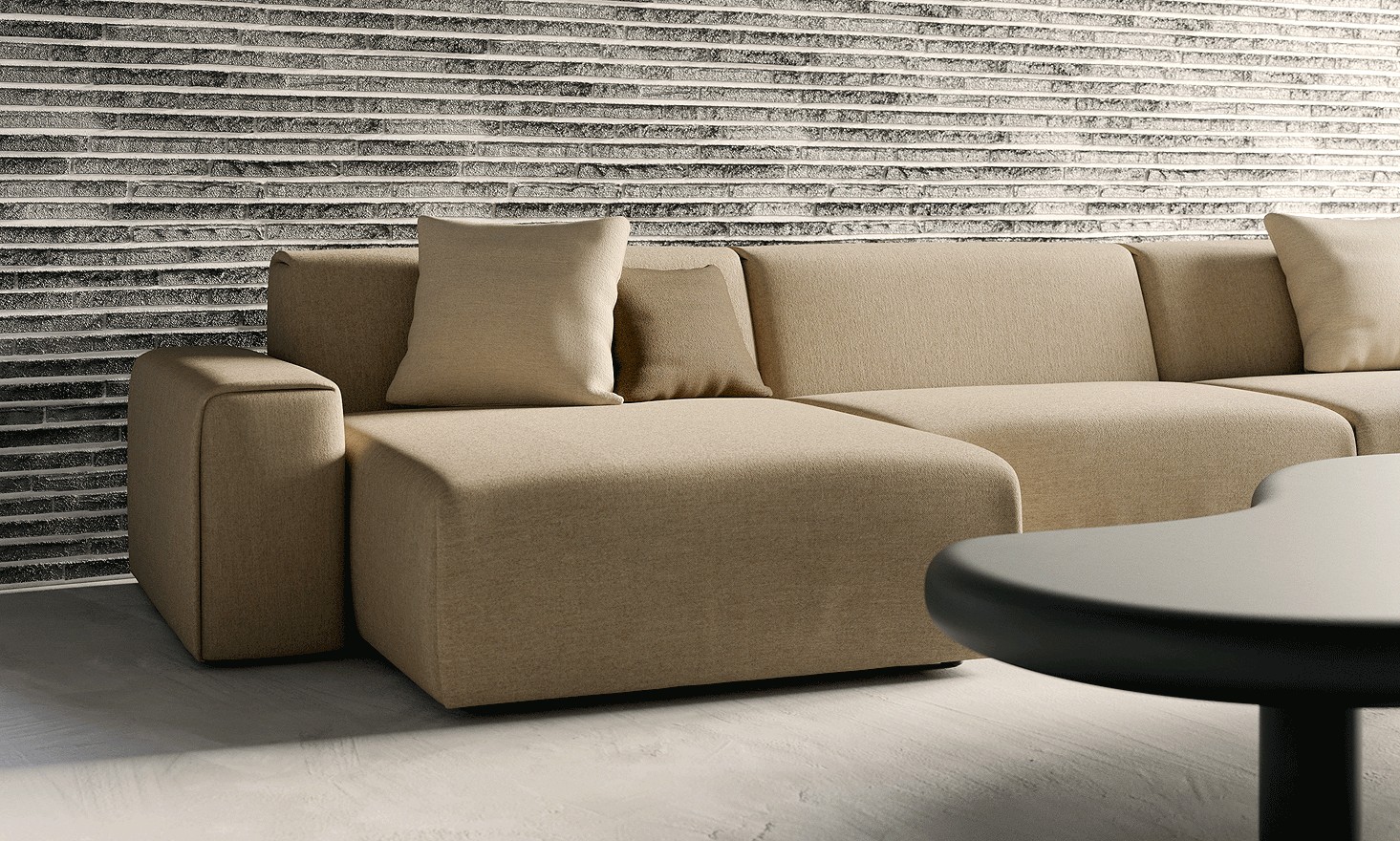 Zróżnicowane bryły pozwalają na dopasowanie elementów sofy do własnych potrzeb oraz przestrzeni. Zestaw dostępnych siedzisk umożliwia stworzenie klasycznego narożnika, asymetrycznej sofy lub nieoczywistych geometrycznie otwartych kompozycji.