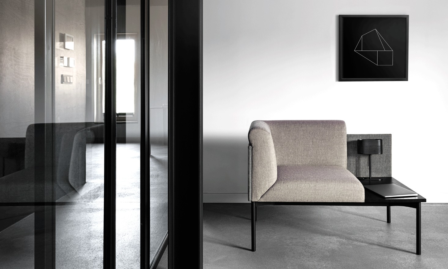 Charakterystyczną cechą kolekcji są dodatkowe blendy mocowane do oparć, które w zależności od wyboru wysokości mogą wyraźnie oddzielać przestrzenie pracy lub wypoczynku, lub delikatnie osłaniać zachowując otwartą formułę sofy lub fotela. Możliwe jest również odwrócenie modułów, a przy dużych wyspach połączenie oparć tak by tworzyły dwa rzędy zwrócone w przeciwne strony.